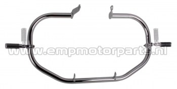 Klappbar Fußrastensatz mit Schelle in Chrom. Geeigenet z. B. für Comfort Line Stürzbüegels von 22 bis 25 mm.